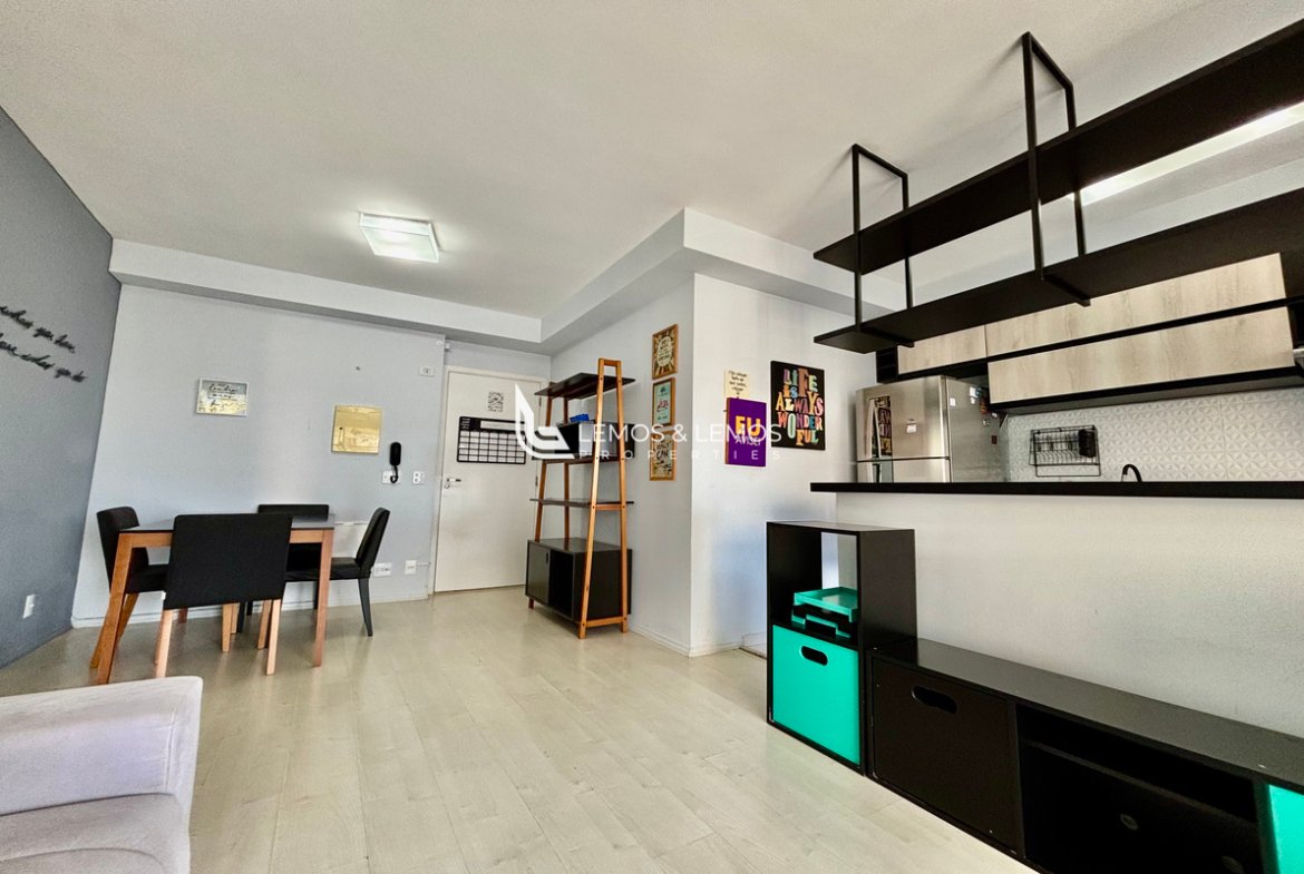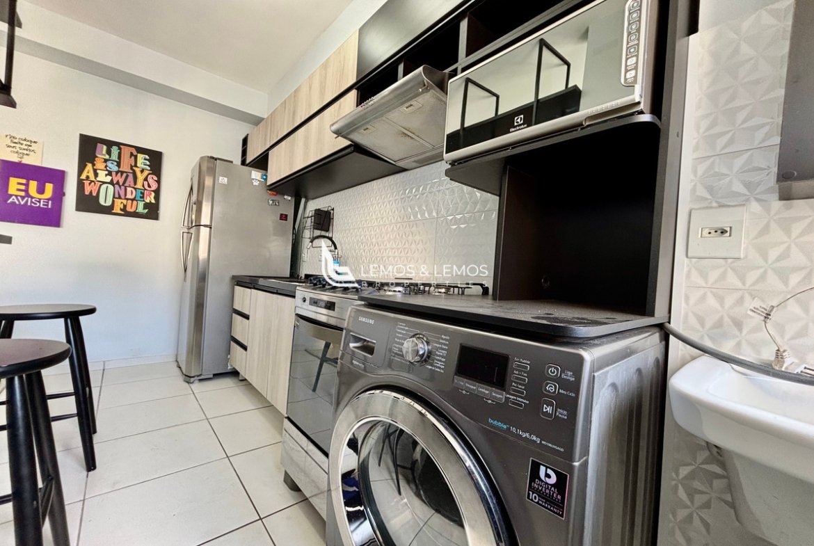 O imóvel conta com móveis planejados, além de eletrodomésticos novos inclusos, oferecendo um ambiente pronto para morar.