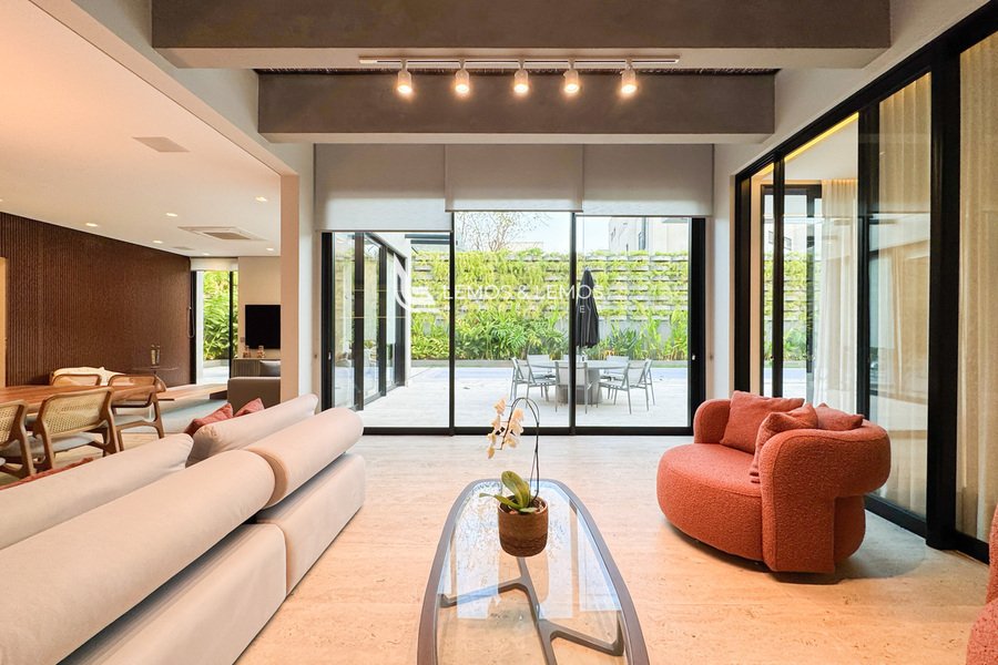 Com projeto arquitetônico assinado por Ricardo Calejo e Guilherme Gabriel, interiores de Giovana Santi e paisagismo de Juliana Fellin, esta residência de 1.012,43m² construídos em um terreno de 909,84m² é uma verdadeira obra-prima de design, sofisticação e tecnologia.