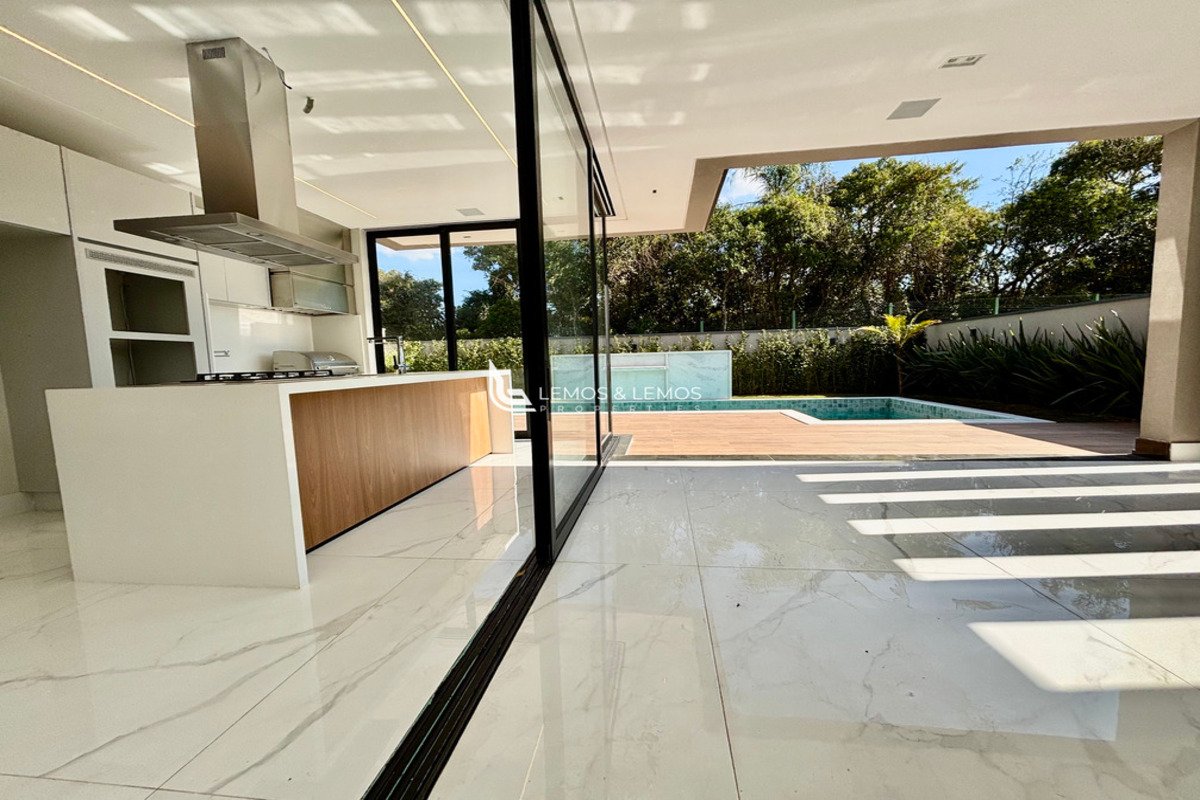 Para receber com elegância, a casa conta com um espaço gourmet integrado, piscina com hidro e aquecimento solar/gás, sauna úmida e churrasqueira Eletromec. O lazer é elevado pelo projeto paisagístico e pela estrutura automatizada e sonora de alta qualidade.