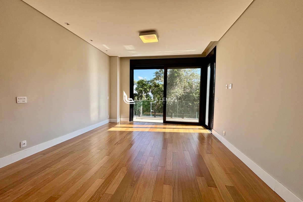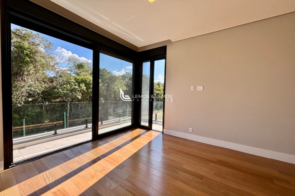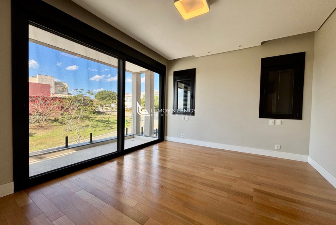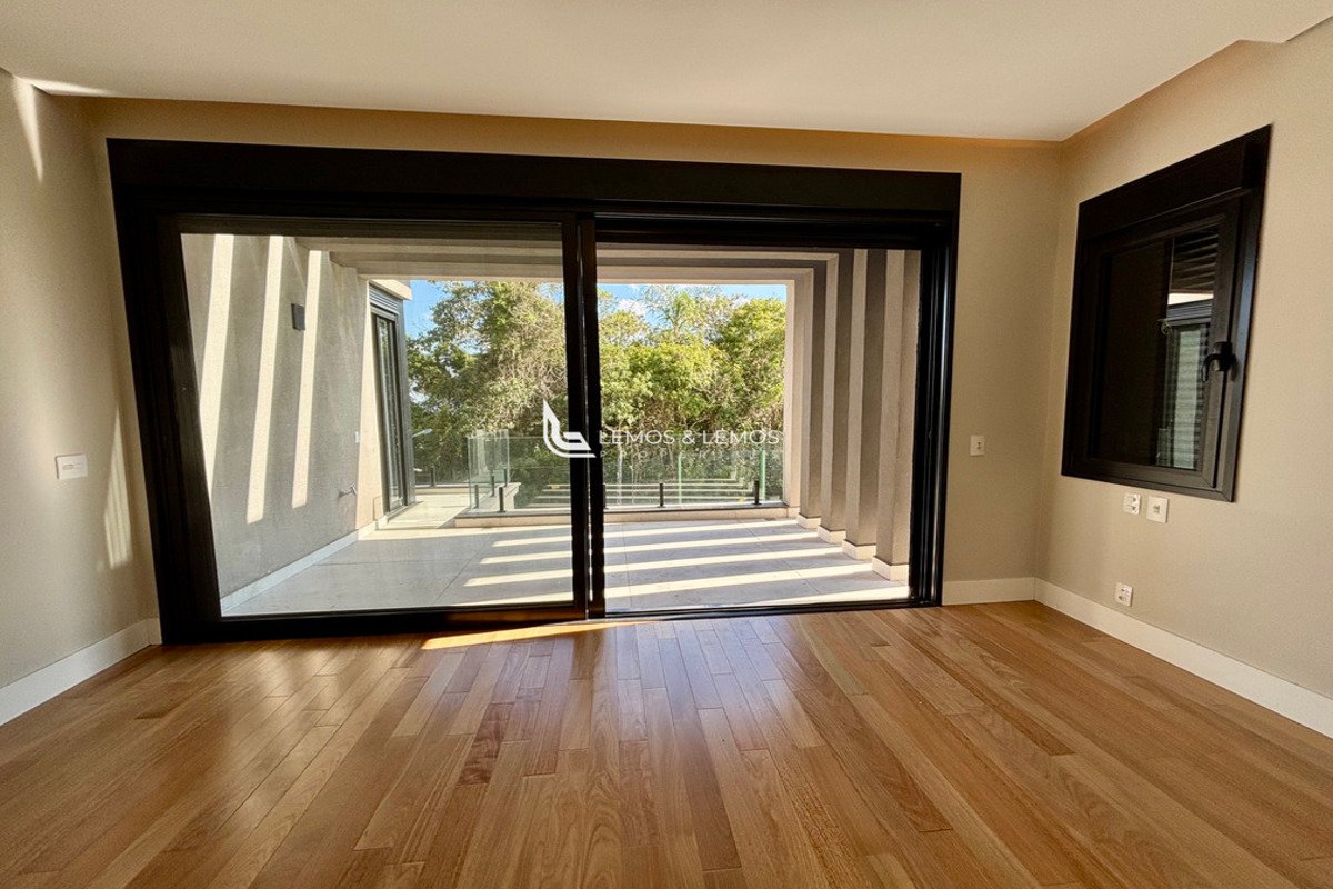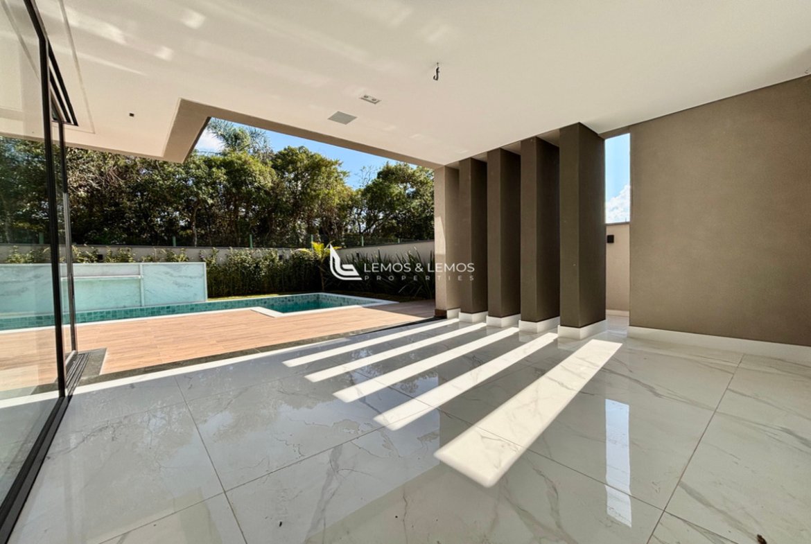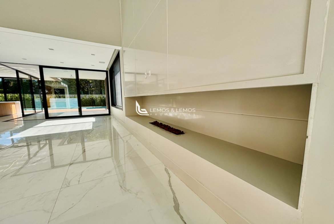 Com 505 m² de terreno e 430 m² de área construída, a casa possui 4 suítes amplas, incluindo uma máster com closet e banheiro Sr. e Sra., living com pé-direito duplo, sala lareira, sala de jantar, escritório, sala íntima, rouparia, além de lavabo e dependência completa para colaborador.
