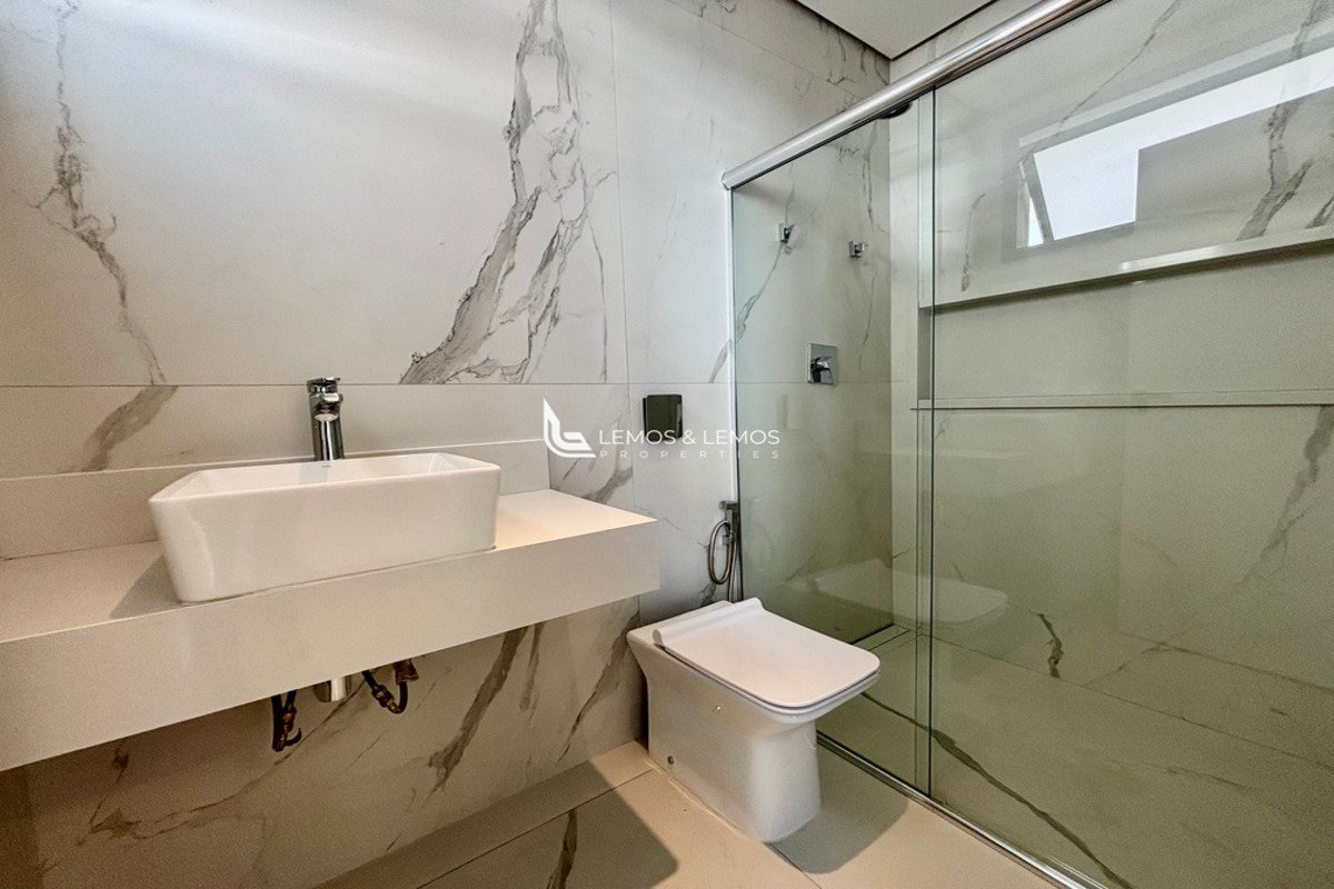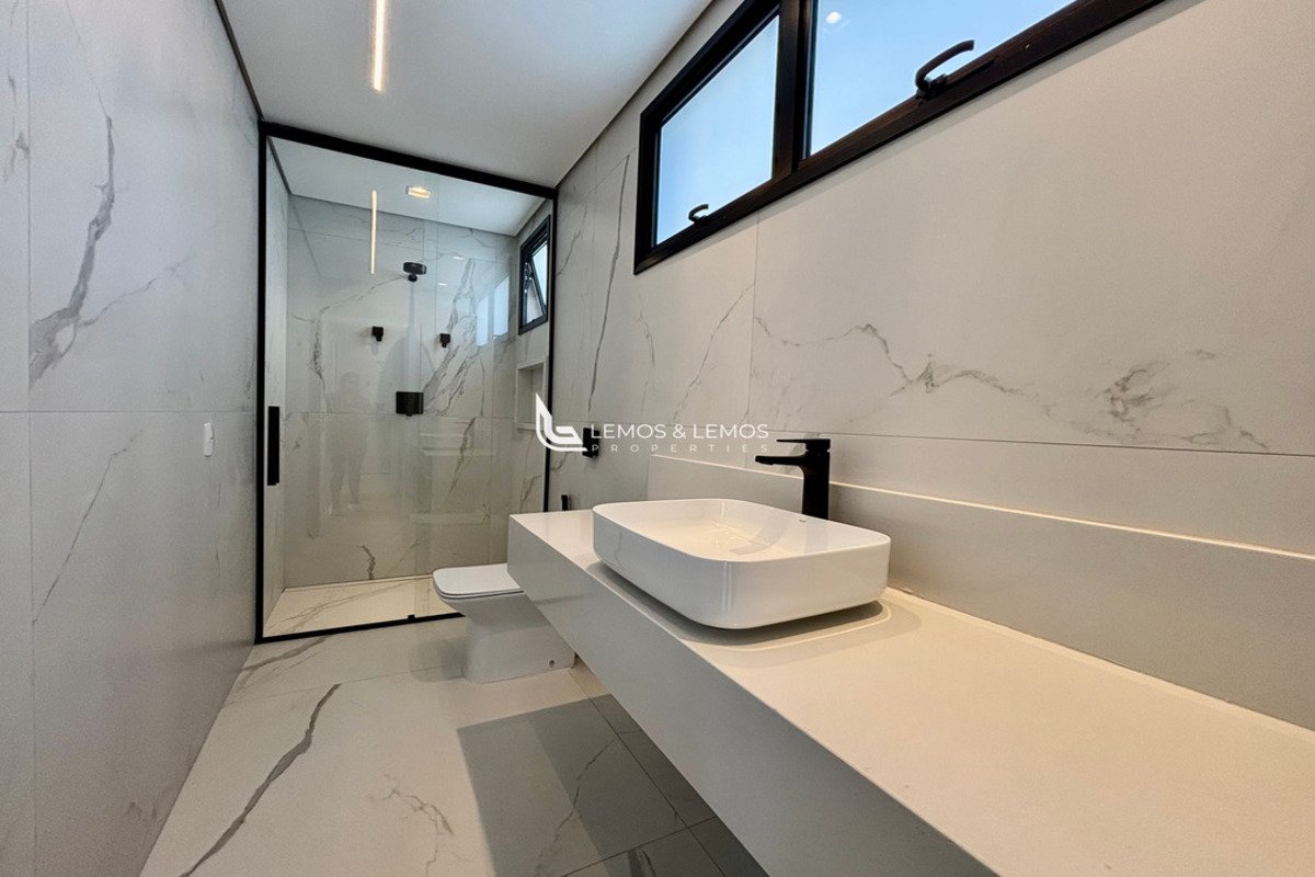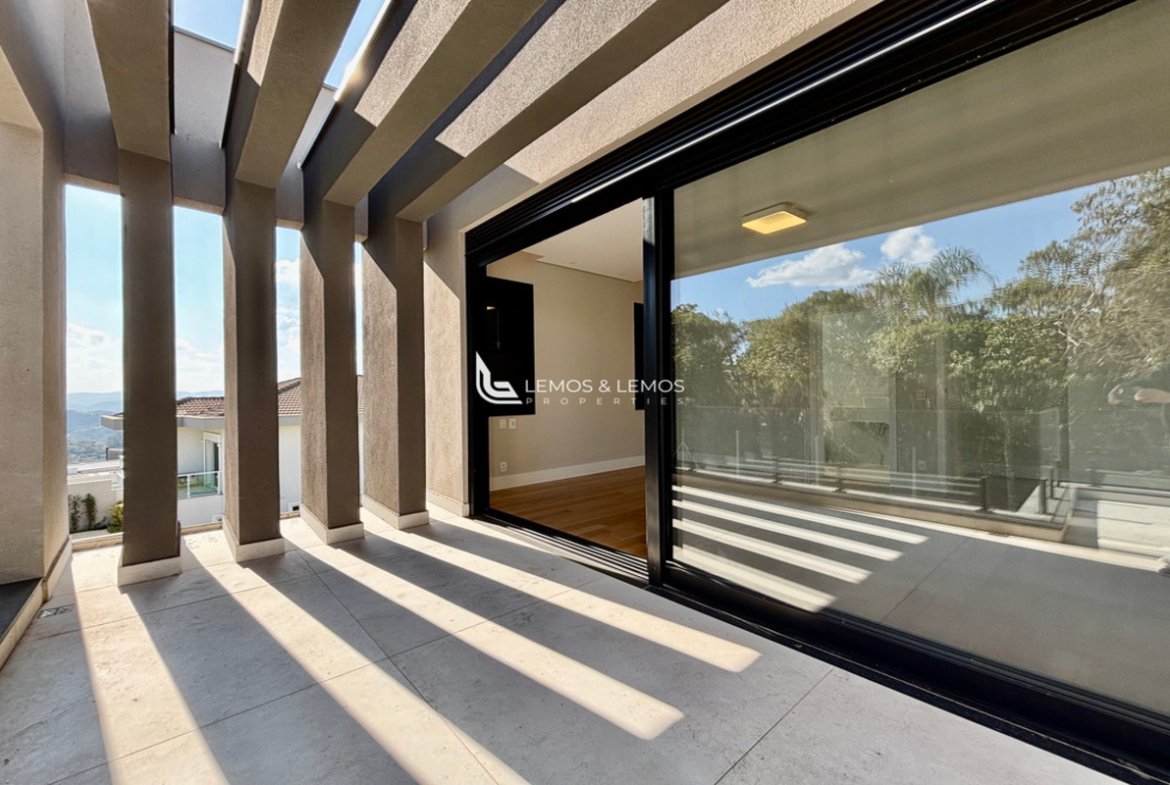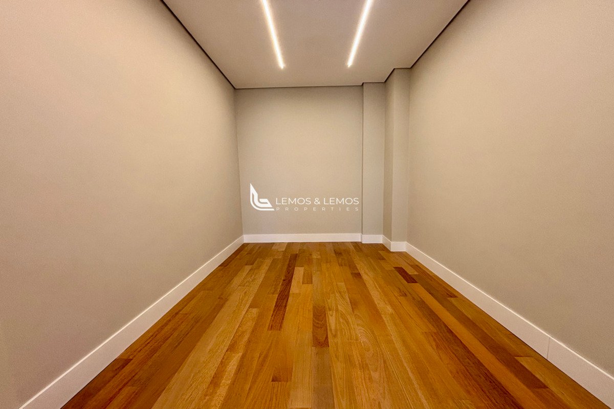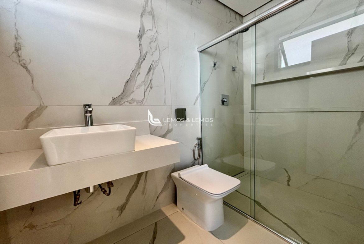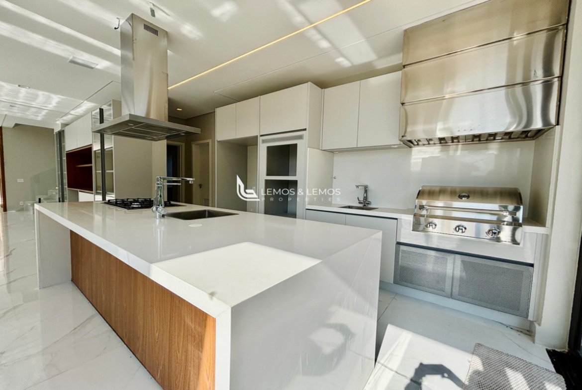 Com 505 m² de terreno e 430 m² de área construída, a casa possui 4 suítes amplas, incluindo uma máster com closet e banheiro Sr. e Sra., living com pé-direito duplo, sala lareira, sala de jantar, escritório, sala íntima, rouparia, além de lavabo e dependência completa para colaborador.